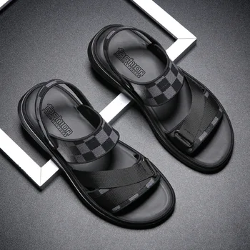 2025 Sandals Men's Large-size Summer Plaid Beach Shoes Sandals Outdoor Casual Trend Versatile slippers Vietnamese Men's Shoes