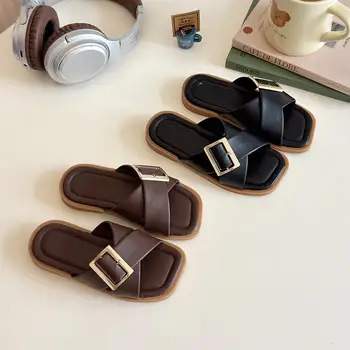Slippers Women Shoes Sandals Slides&slippers Hot Sale Fashion Flat Round Toe Cross Casual Outdoor Summer Solid Color Plus Size