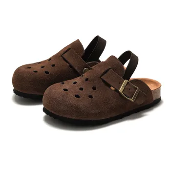 Children's Cork slippers Perforated Breathable Berkery Shoes Outdoor Sandals Reverse Velvet Leather for Men and Women