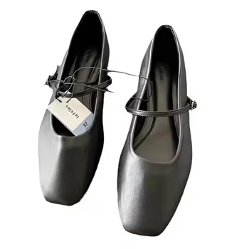 Design Flat Shoes Women Fashion Trendy Loafers for Ladies Square Toe Ballet Shoes Women Sandals Cotton Fabric Rubber Buckle PU