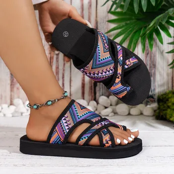 2025 Summer New Style One-legged Toe Ethnic Style Thick-soled Lightweight Roman Fish Mouth Breathable Beach Sandals for Women