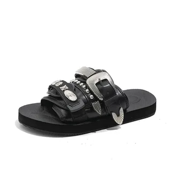 2025 New slippers Men's Japanese Silver Rivet Inlaid Casual Shoes Lightweight and Non-slip Velcro Eva Soft Sole Wear